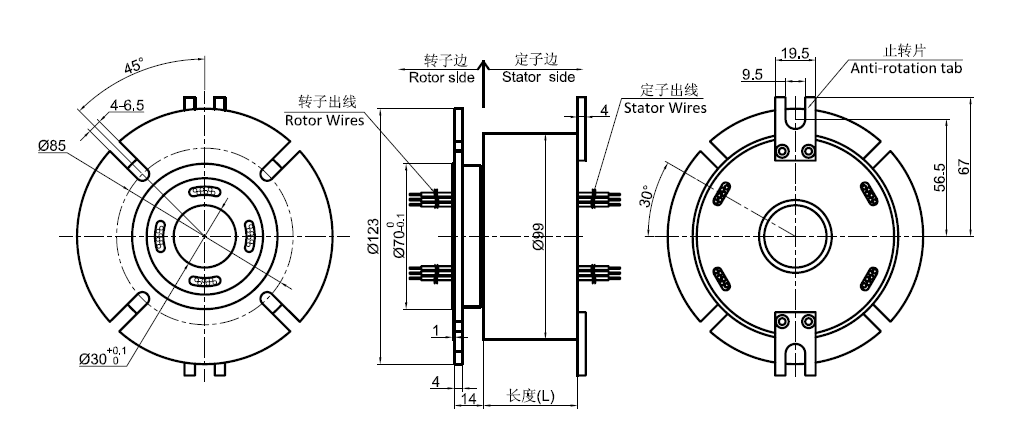 GT3099F系列整體式精密導電滑環,主要應用于360度連續旋轉且需要保證電源,信號不能中斷的場合:多用于包裝機械、自動化機床、涂布機、自動鎖螺絲機、槍刺地毯機器人、智能磨削機器人、拋光機、智能倉儲機器人、 電纜卷軸、壓模機、離心機、倉儲物流車、噴涂設備等任意需要360°旋轉導電或傳輸各種控制信號的裝置。