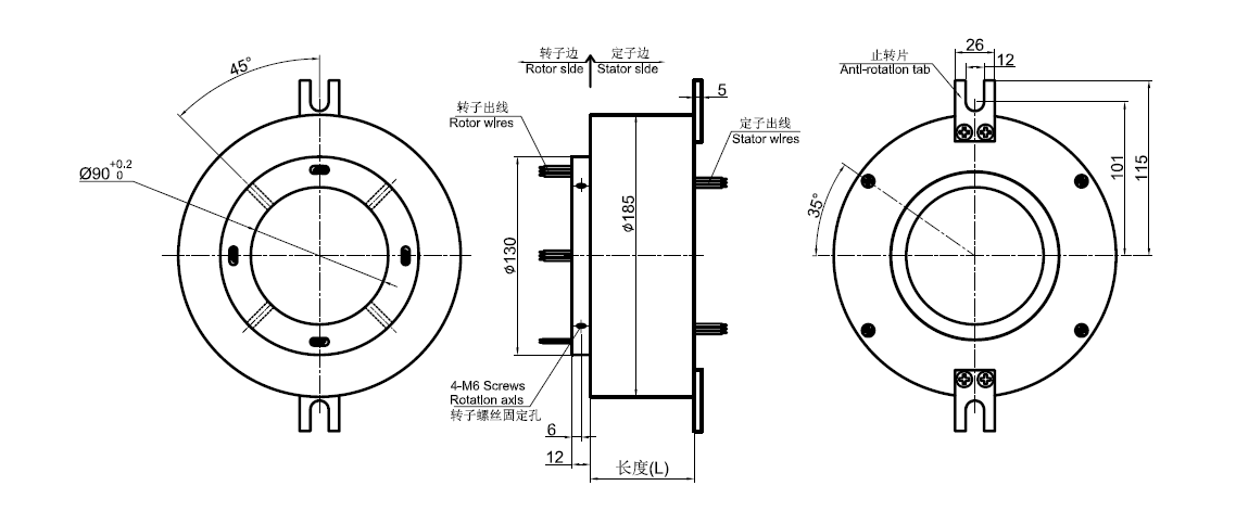 GT90185系列過孔滑環選型表 | |||||||||