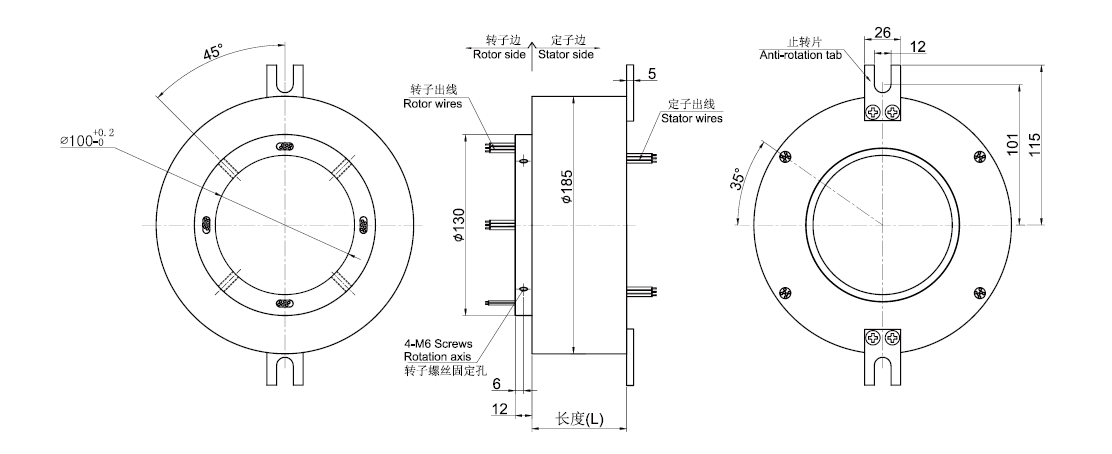 GT100185系列整體式精密導電滑環,主要應用于360度連續旋轉且需要保證電源,信號不能中斷的場合:多用于加熱滾筒、自動焊接設備、金屬表面加工設備、擠出流延復合設備、靜態扭矩傳感器、壓力變送器、工業機器 人、電線(網線)電纜生產設備、電子(紡織品)質量檢測儀器、機器人生產線、汽車涂裝和裝配線的車間設備改裝、加速度傳感器、研磨分散機、旋轉餐桌等任意需要360°旋轉導電或傳輸各種控制信號的裝置。