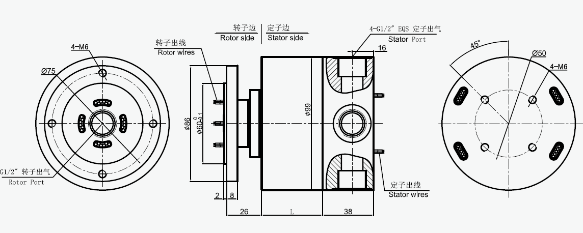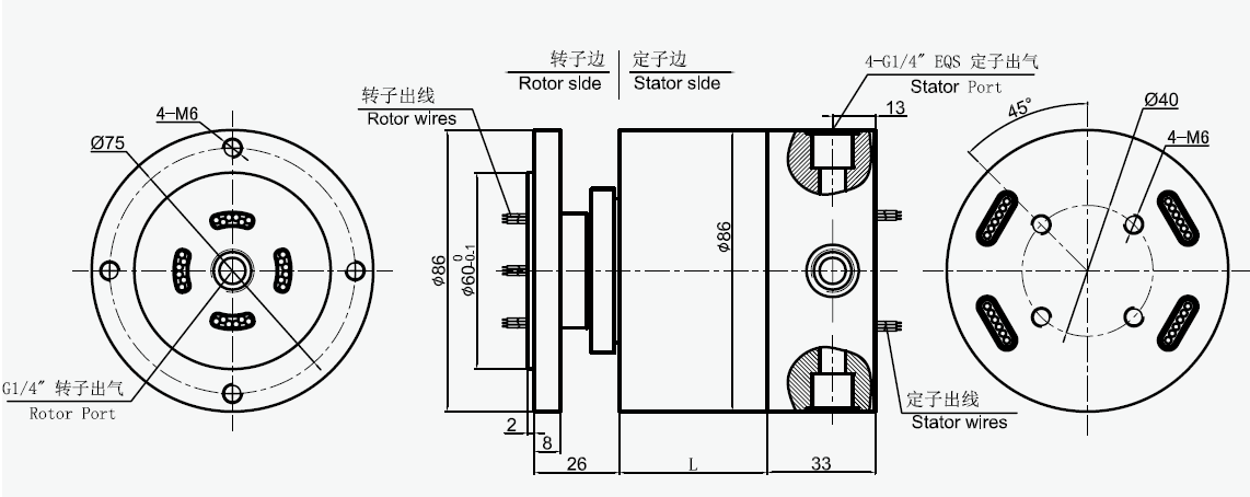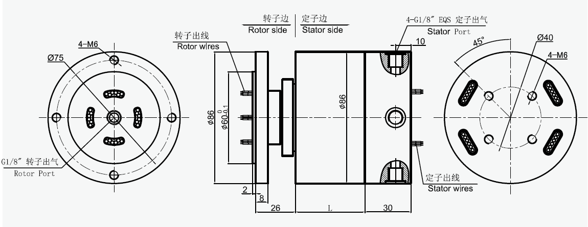 MAPH104-03, MAPH104-04, MAPH104-05氣液電一體滑環選型表 1)XX=03 接口尺寸G1/4 2)XX=04 接口尺寸G3/8 3)XX=05 接口尺寸G1/2 |