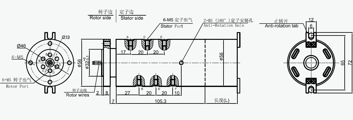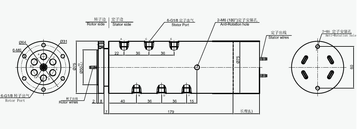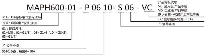 MAPH600-XX 氣液電一體滑環選型表 1)XX=01,接口尺寸=M5, 氣管規格3~6mm 2)XX=02,接口尺寸=G1/8,氣管規格3~10mm 3)XX=03,接口尺寸=G1/4,氣管規格3~12mm |