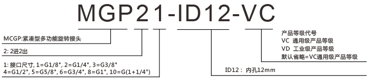 | MGP21-ID12 | 2進(jìn)2出 | G1/8“ | 12mm | 0-50MPa | MGP24 | 2進(jìn)2出 | G1/2“ | N/A | 0-50MPa |