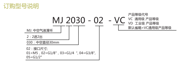 MJ2030氣/液滑環(huán)選型表 | ||||