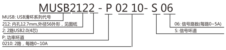 MUSB2122 2 通道USB滑環系列選型表 | |||||