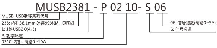 MUSB2381 1 通道USB滑環系列選型表 | |||||